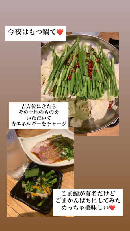 名物のもつ鍋とごまカンパチで乾杯!