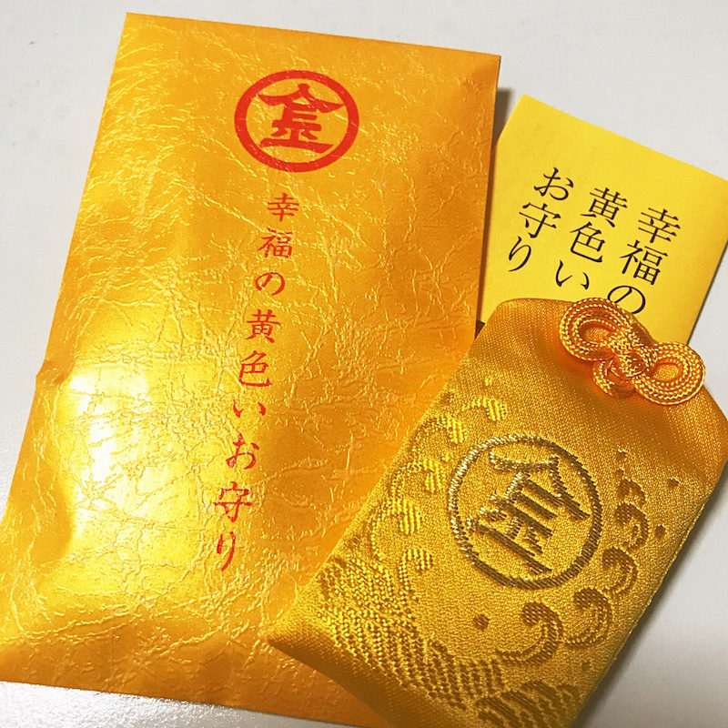 『幸福の黄色いお守り』ですが金運を連想させる色とロゴマークです。