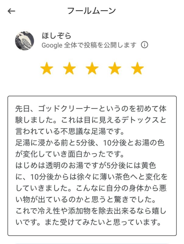 時間もたっぷり使ってくださり感謝です。浄化スプレーやバスソルトを活用して自分軸がぶれないようにします。次回もまた受けたいです